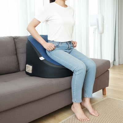 MOVI is an inflatable cushion designed to gently lift and support you when standing up or sitting down. With the push of a button, it inflates to help reduce strain on your knees, hips, and back—making movement easier and more comfortable.